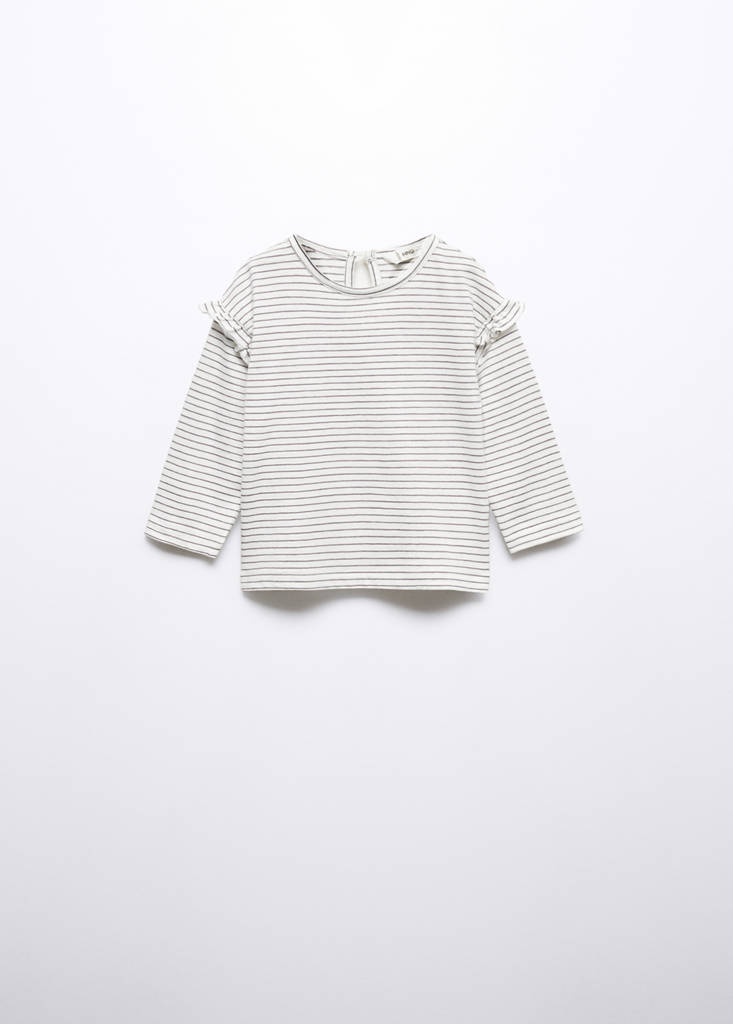 Colección Básicos. 100% algodón. Estampado de rayas. Diseño recto. Detalle de volante. Regular fit. Cuello redondo. Cierre de botón. Manga larga
