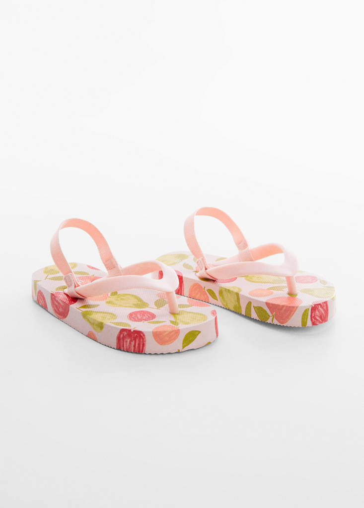 Material de termoplástico. Estampado de frutas. Diseño de tiras. Punta redonda. Colección baño