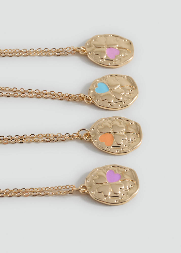 Pack de 4. Estampado de tréboles. Cadena fina metálica. Cierre de gancho