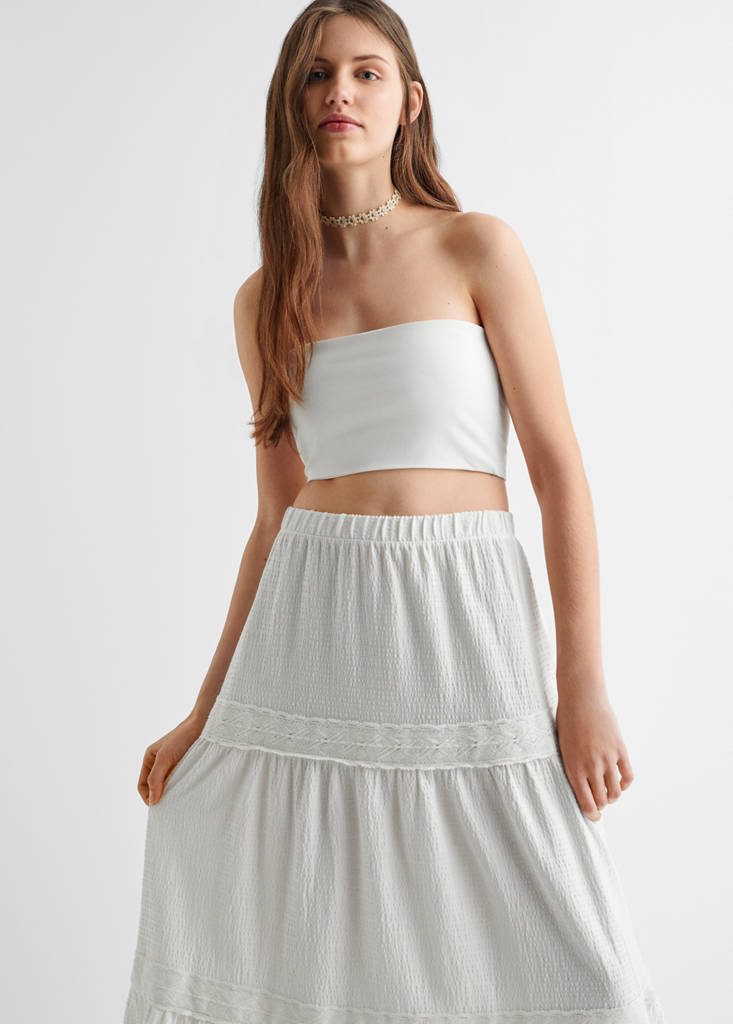 100% algodón. Diseño largo. Diseño volantes. Detalles bordados. Detalles plisados. Goma elástica. Sin cierre