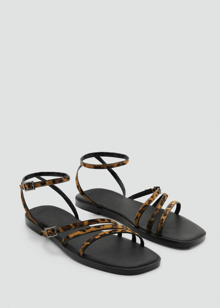 Diseño de leopardo. Diseño de tiras. Flat. Punta cuadrada. Cierre de tira tobillera