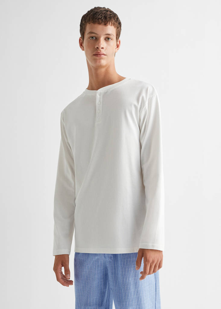 Pack de camiseta y pantalón de pijama. 100% algodón. Estampado de rayas. Diseño recto. Diseño largo. Cuello redondo. Manga larga. Cierre de cordón