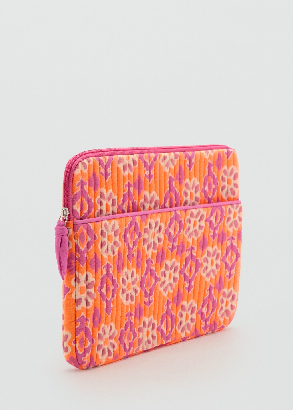 Tejido 100% algodón. Tejido acolchado. Diseño estampado floral. Cierre de cremallera. Funda de portátil. Conjunto disponible.