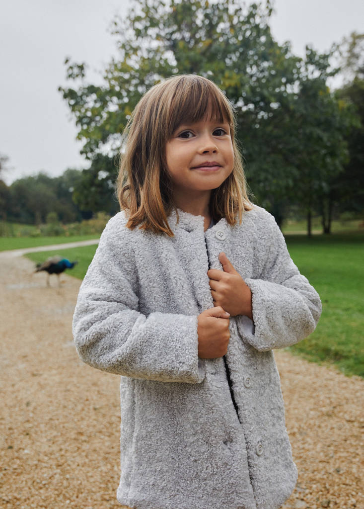 Kollektion für Partys, Feierlichkeiten und Kommunionen. Teddy-Stoff. Gerades Design. Langes Design. Rundhalsausschnitt. Lange Ärmel. Knopfverschluss. Etikett an der Innenseite für persönliche Daten
