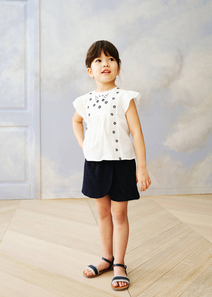 Baumwollstoff. Gerades Design. Kurzes Design. Hosenrock-Design. Bund mit Gummizug. Schleifendetail auf Taillenhöhe. Total Look