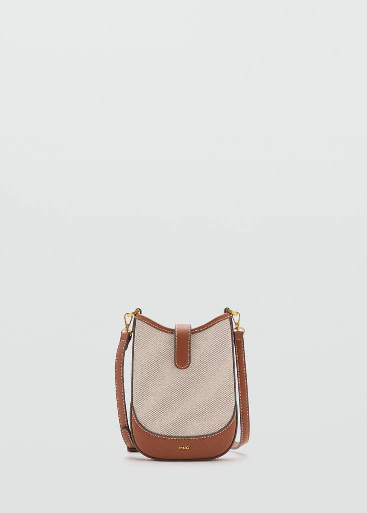 Kleine Größe. Canvas-Gewebe. Schulterriemen. Abnehmbarer Riemen. Kontrastbesatz. Magnetverschluss. Innenfutter. Raffiabast-Effekt