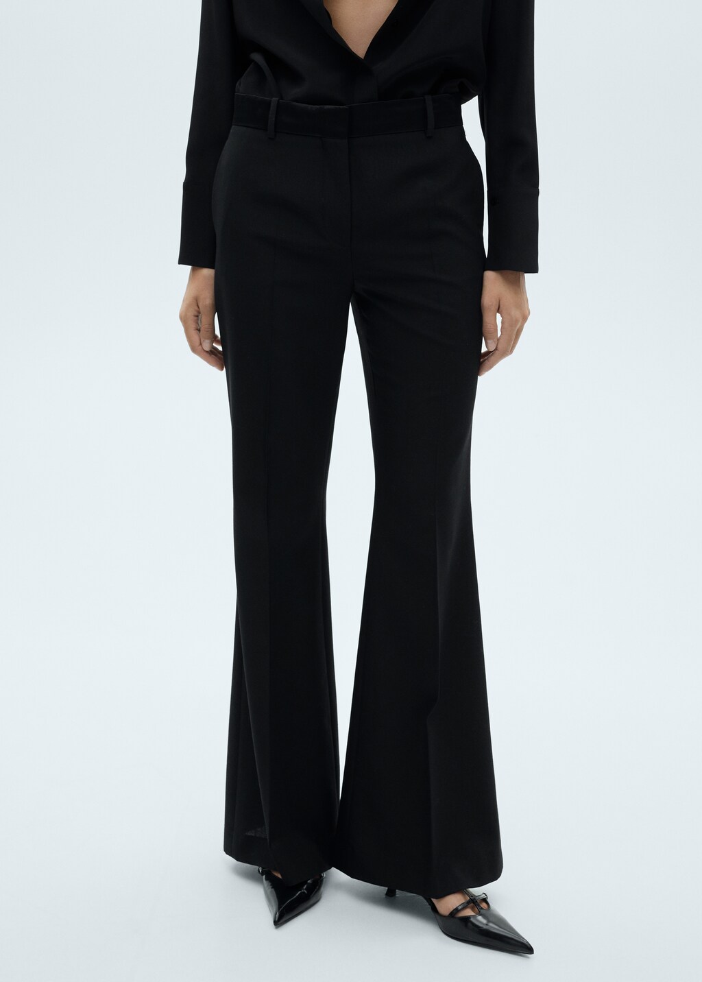 Woll-Mischgewebe. Langes Design. Im Flared-Stil. Tiefer Sitz. Gürtelschlaufen. Satinbesatz. Zwei Seitentaschen. Verdeckter Knopf-, Haken- und Reißverschluss. Innenfutter. Kollektion für Party und Zeremonie. Total Look.