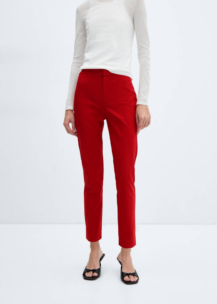 Baumwollmischgewebe. Skinny Fit. Crop-Design. Hohe Taille. Zwei Leistentaschen hinten. Verdeckter Knopf-, Haken- und Reißverschluss. Büro-Looks. Tailliertes Design. Tiefer Sitz. Gerades Design. Standarddesign. Mittlere Bundhöhe. Seitenschlitze. Reißverschluss, Knopf und verdeckter Klettverschluss mit Knopfleiste. Innenfutter. Mittelgroß