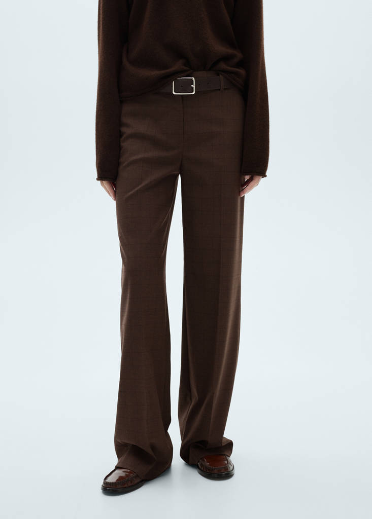 Mittlere Bundhöhe. Karomuster. Zwei seitliche Taschen. Gürtelschlaufen. Verdeckter Knopf-, Haken- und Reißverschluss. Bundfalten. Gerades Design. Langes Design