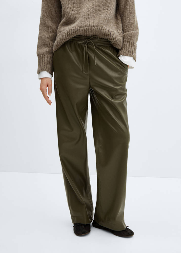 Ledereffekt. Wide-Leg-Design. Mittlere Bundhöhe. Zwei seitliche Taschen. Gummibund mit Schleifenverschluss. Futter