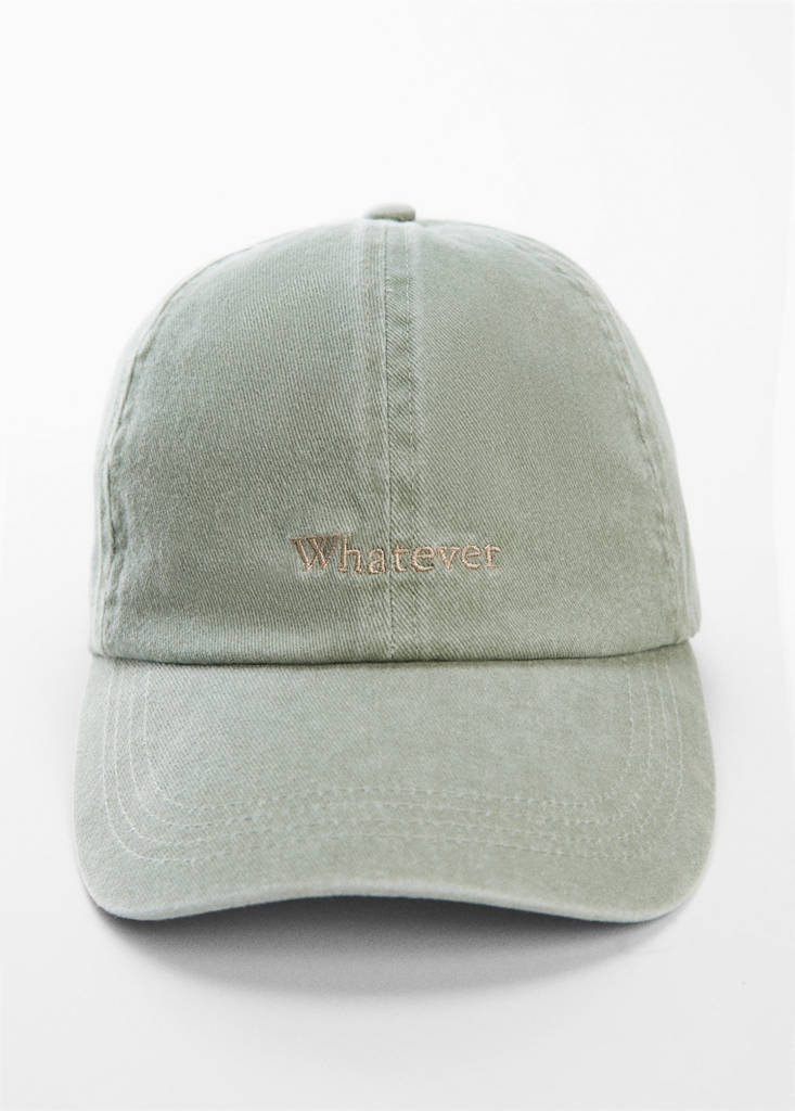 Kappe mit aufgesticktem SchriftzugPreisentwicklungAusgangspreis durchgestrichen [€ 19,99 ]€ 19,99Aktueller Preis [€ 12,99 ]€ 12,99-35 %Wählen Sie eine FarbePastellgrünWählen Sie Ihre GrößeEinheitsgrößeNicht vorrätig. Ich will es!BenachrichtigenBaumwoll-Mischgewebe. Aufgestickter Schriftzug. Mit Schirm. Festival SeasonDetails, Zusammensetzung und PflegehinweiseVerfügbarkeit im Geschäft