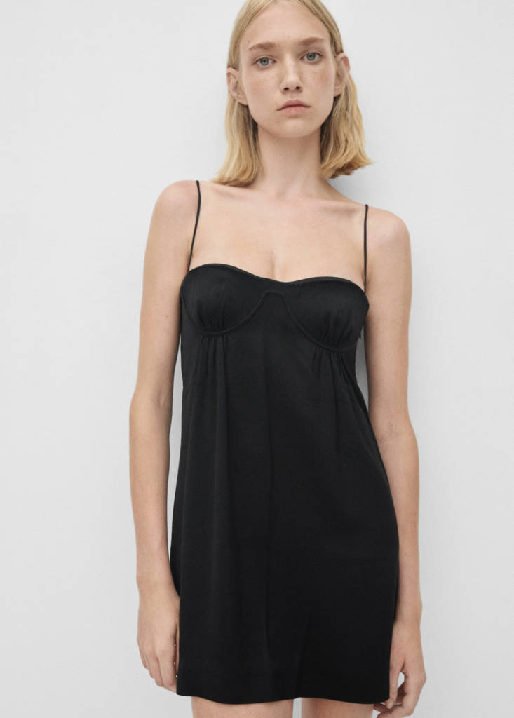 Dünne Träger. Kurzes Design. Selection Kollektion. Kollektion für Partys, Feierlichkeiten und Kommunionen. Korsettausschnitt. Unsichtbarer seitlicher Reißverschluss. Ärmellos. Tailliertes Design