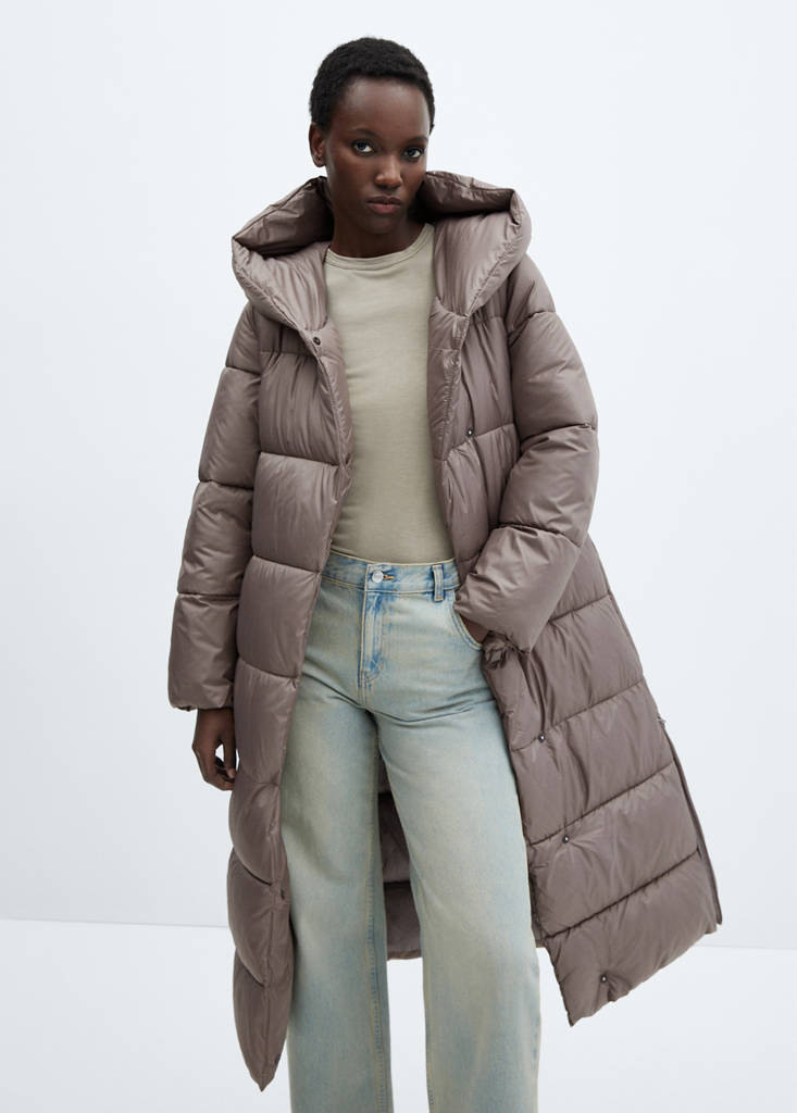 Wasserabweisend: Die strapazierfähige Oberfläche dieses Kleidungsstücks schützt vor leichtem Regen und weist den Kontakt mit Wasser und Regentropfen ab, gestepptes Design, wickel-Design, langes Design, gerades Design, wickelkragen, lange Ärmel, reißverschluss auf der Vorderseite, kapuze, seitentaschen, seitliche Zip-Schlitze, futter.