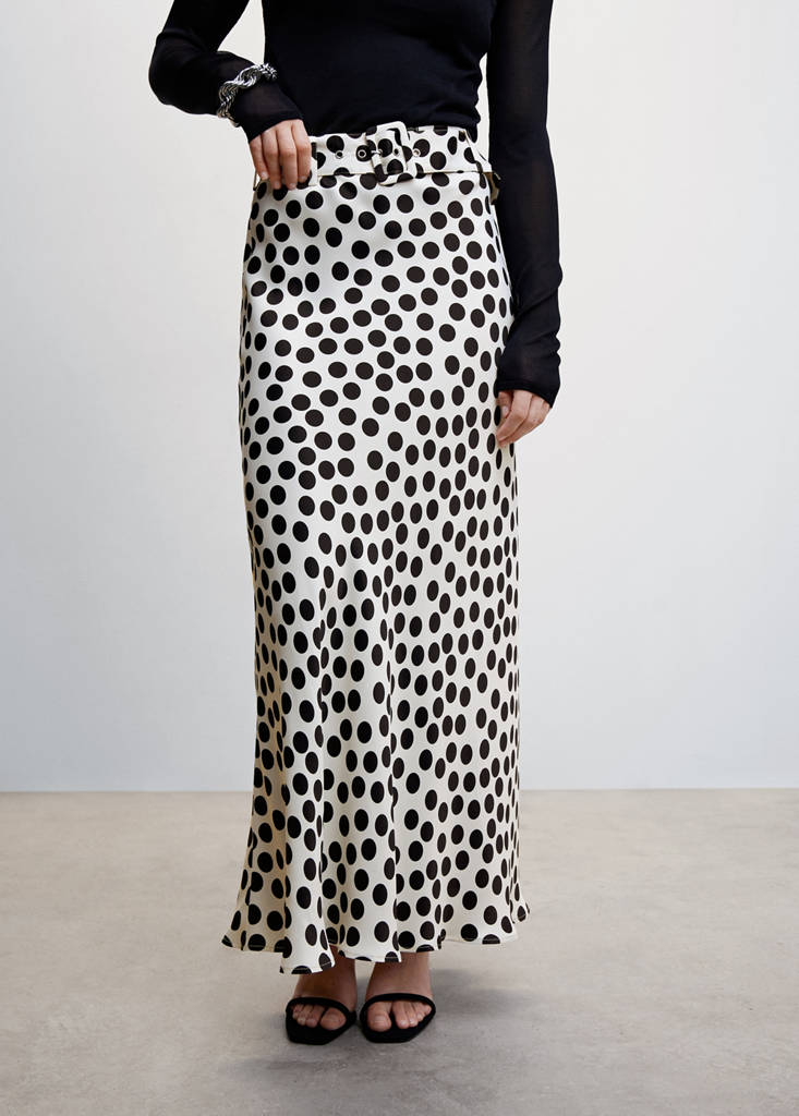 Gemusterter Rock mit Polka Dots und Gürtel