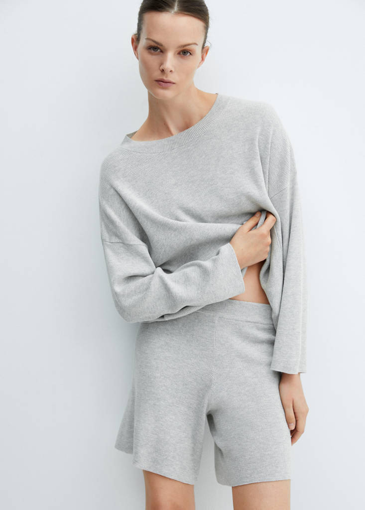 Baumwoll-Leinen-Mischgewebe. Gerades Design. Rundhalsausschnitt. Lange Ärmel. Tief angesetzte Schulternähte. Ohne Verschluss. Rippbündchen. Total Look