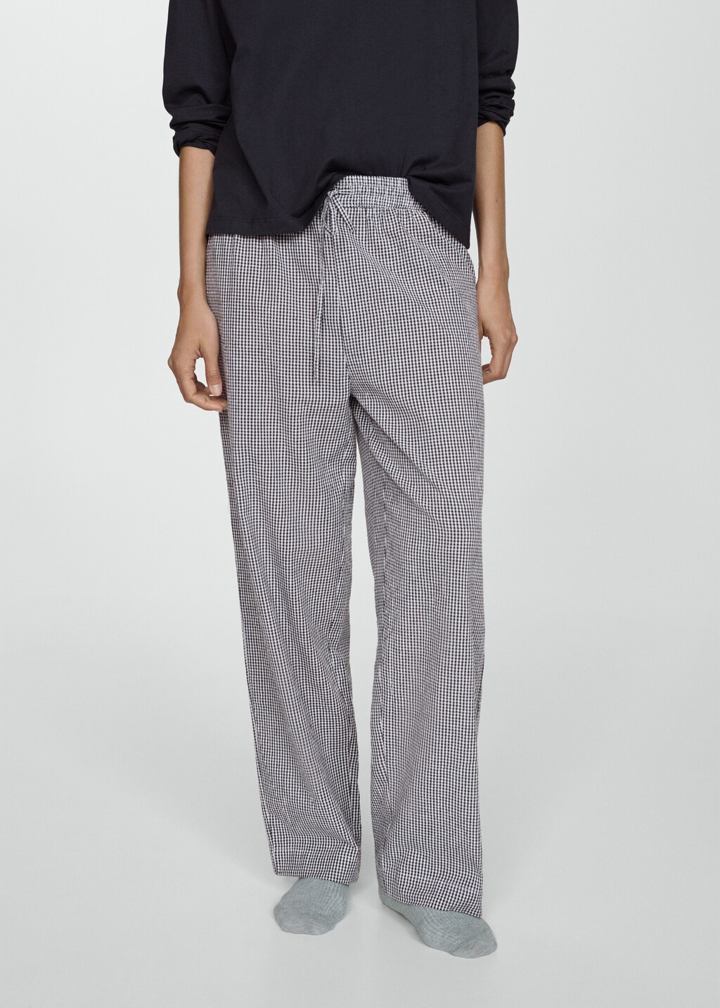 Langes Design. Gerades Design. Karomuster. Rundhalsausschnitt. Lange Ärmel. Bund mit Gummizug. Ohne Verschluss. 100 % Baumwolle.
