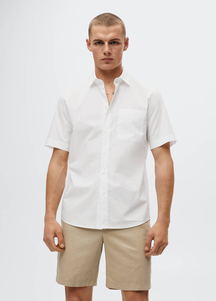 Kurzärmliges BaumwollhemdPreisentwicklungAusgangspreis durchgestrichen [€ 45,99 ]€ 45,99Aktueller Preis [€ 34,99 ]€ 34,99-24 %Wählen Sie eine FarbeWeißWählen Sie Ihre GrößeSNicht vorrätig. Ich will es!MNicht vorrätig. Ich will es!LNicht vorrätig. Ich will es!XLNicht vorrätig. Ich will es!MaßeBenachrichtigenSlim Fit. Bio-Baumwollstoff. Klassischer Kragen. Kurze Ärmel. Aufgesetzte Vordertasche. Knopfverschluss. Das Model ist 183 cm groß und trägt die Größe MDetails, Zusammensetzung und PflegehinweiseVerfügbarkeit im Geschäft
