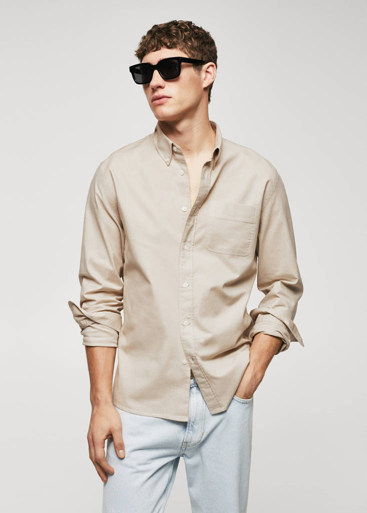 ESSENTIALS: Made to last. Basics-Kollektion. Baumwoll-Oxford. Slim Fit. Geknöpfter Kragen. Lange Ärmel mit Knöpfen. Aufgesetzte Brusttasche. Knopfverschluss. Das Model trägt die Größe M