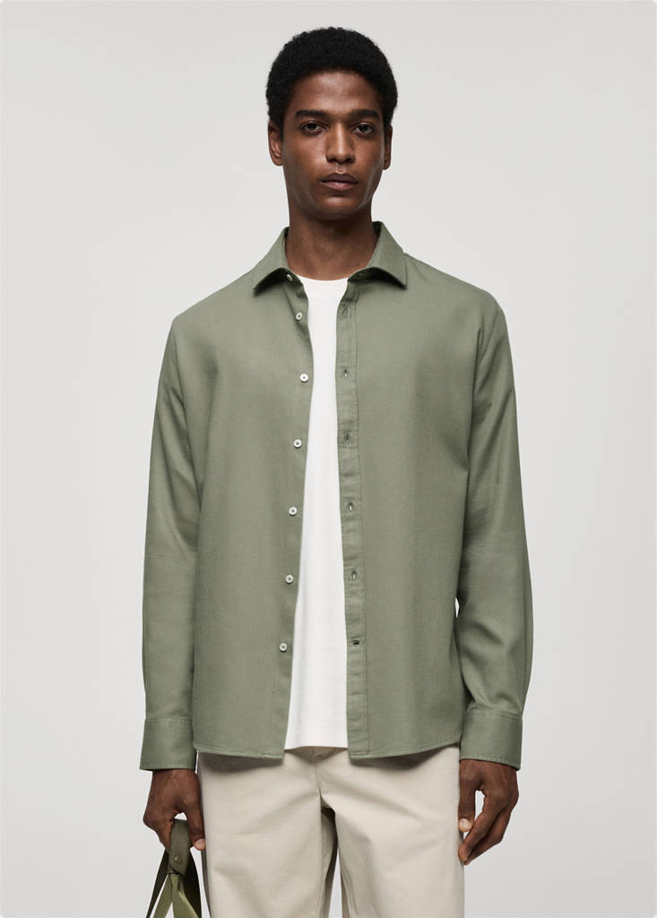 Regular Fit. 100% Baumwolle. Strukturierter Stoff. Klassischer Kragen. Knopfverschluss. Knopfmanschetten. Abgerundeter Saum