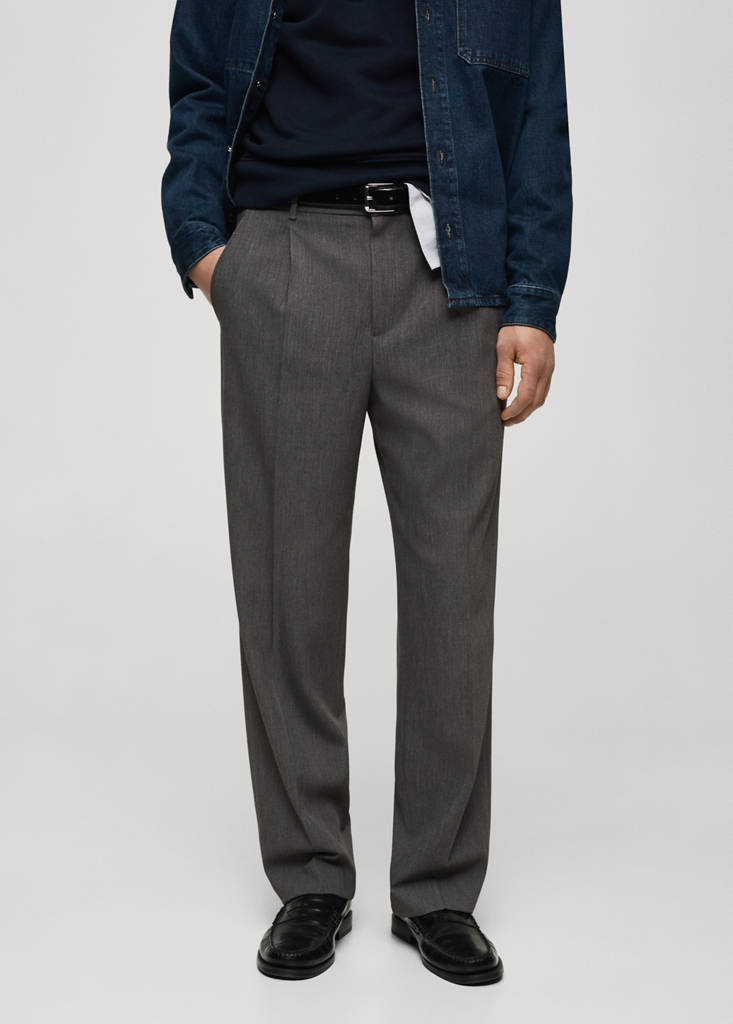 Gerader Schnitt. Reißverschluss und Knopfverschluss. Gürtelschlaufen. Integrierter Tunnelzug in der Taille. Bundfalten. Bügelfalte vorne und hinten. Zwei seitliche Taschen. Zwei Paspeltaschen mit Knopf auf der Rückseite