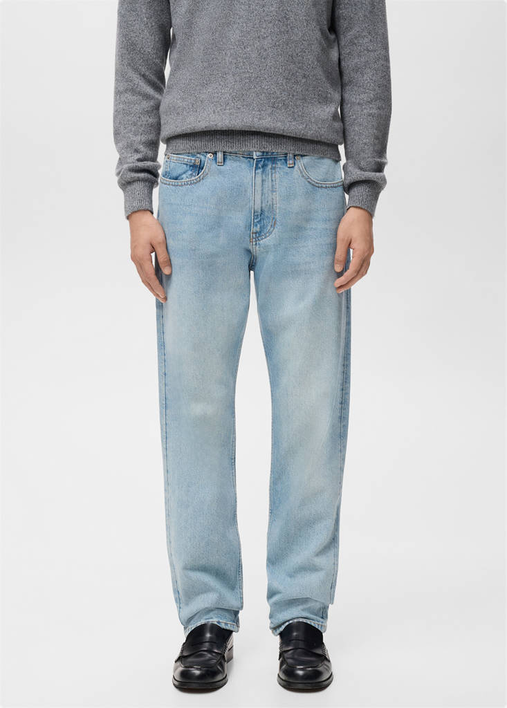 Regular Fit. Baumwollstoff im Jeans-Stil. Mittlere Used-Waschung. Reißverschluss und Knopfverschluss. Gürtelschlaufen. Zwei Seitentaschen. Münztasche. Zwei aufgesetzte Taschen auf der Rückseite