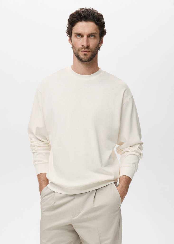 100% Baumwolle. Boxy-Silhouette. Baumwollmischgewebe mit aufgerauter Innenseite. Rundhalsausschnitt. Kragen, Bündchen und Saum in Rippstrick. Gerader Saum