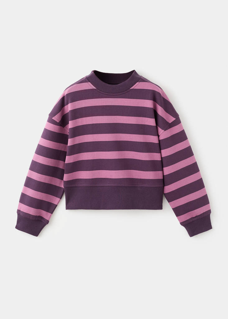 100% Baumwolle. Gerades Design. Streifendesign. Rundhalsausschnitt. Lange Ärmel. Gerippter Kragen, Bündchen und Saum