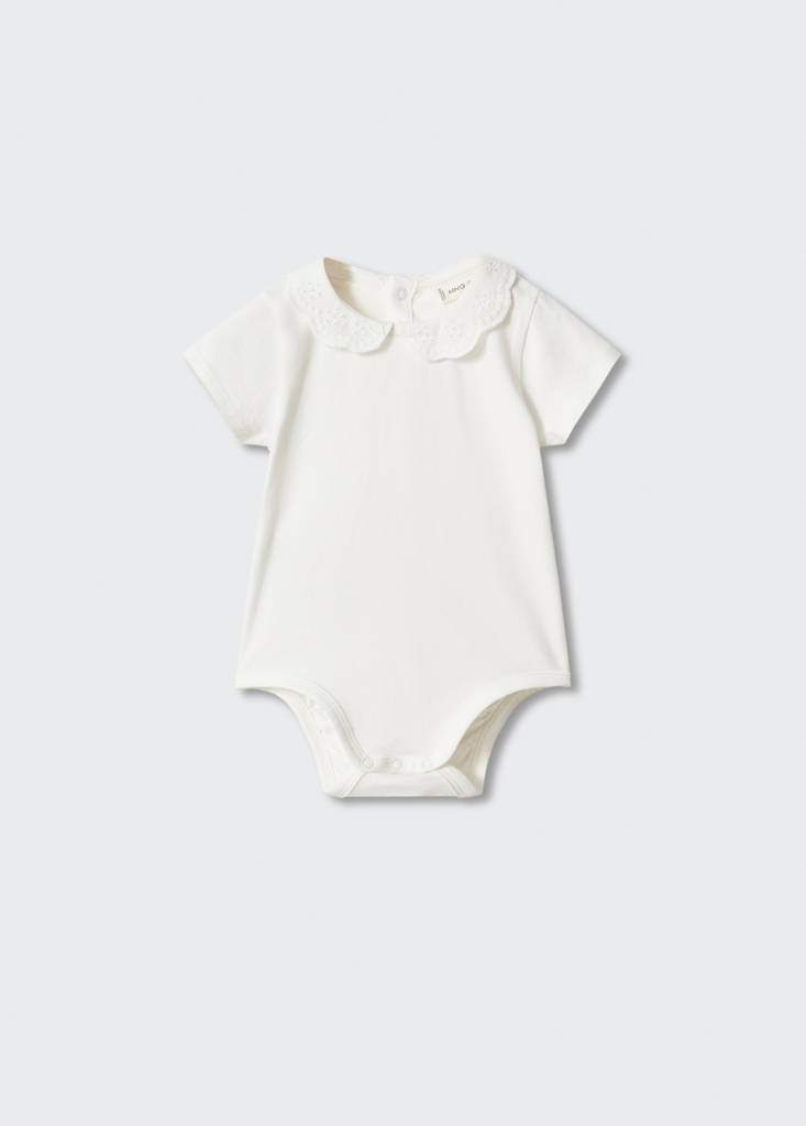 Baumwoll-Body mit besticktem Kragen