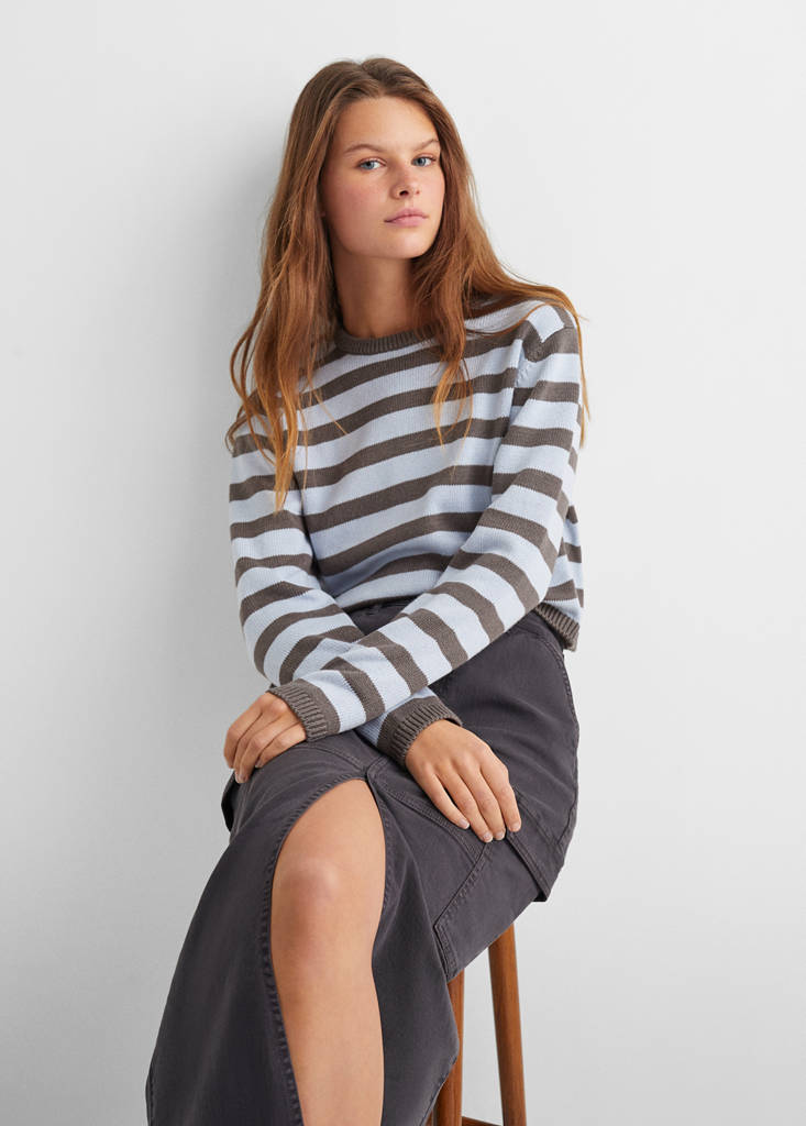 Baumwolle. Gerades Design. Streifenmuster. Rundhalsausschnitt. Lange Ärmel. Ohne Verschluss