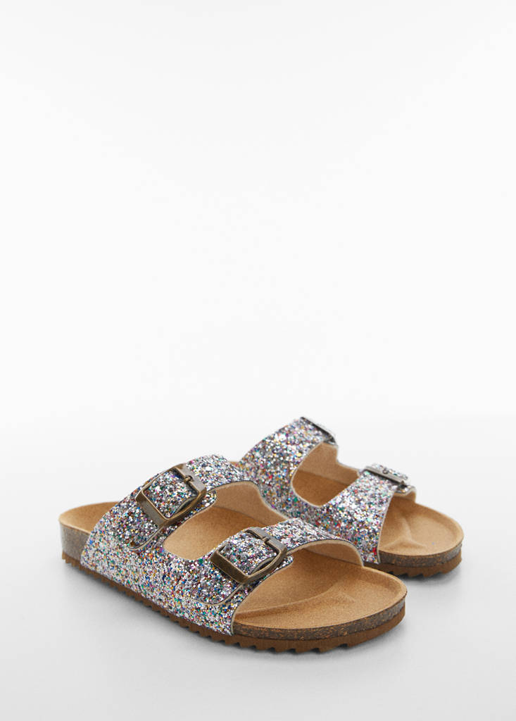 Glitzerdetail. Runde Spitze. Eingriff vorne. Doppelschnalle