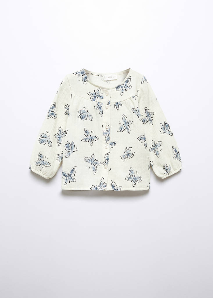 Tissu en coton. Coupe droite. Col rond. Manche longue. Ce vêtement est également disponible dans la collection Kids Girl. Imprimé papillons. Fermeture avant avec boutons
