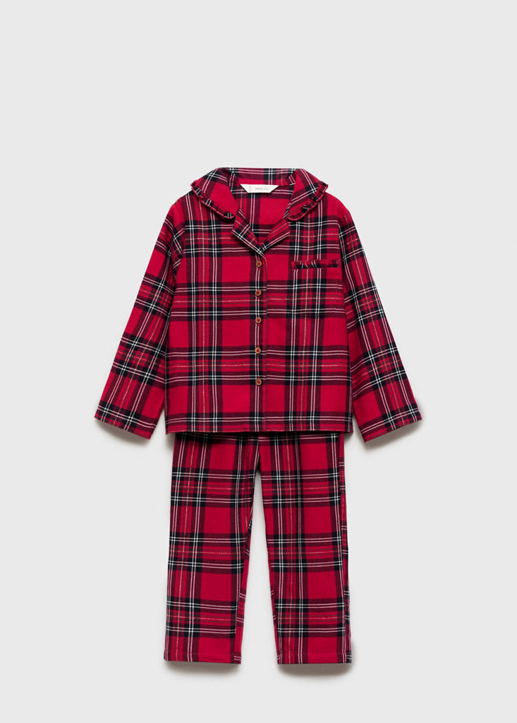 Pack de t-shirt et pantalon de pyjama. Tissu en coton mélangé. Coupe droite. Motif à carreaux. Détail en lurex. Col à revers. Poche plaquée. Manche longue. Fermeture à boutons. Taille élastiquée. Design long. Fermeture à cordon