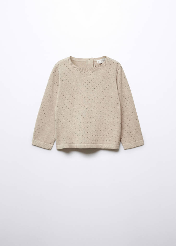 Tissu en maille fine. Tissu en coton. Imprimé à pois. Coupe droite. Col rond. Manche longue. Fermeture à bouton sur le devant