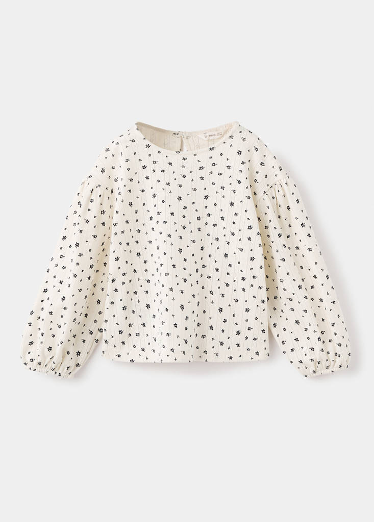 Confectionné en tissu 100 % coton, ce vêtement présente une coupe droite, un imprimé floral et des détails côtelés. Les manches bouffantes et les poignets élastiques sont confortables, tandis que la fermeture à bouton à l’arrière assure un ajustement parfait