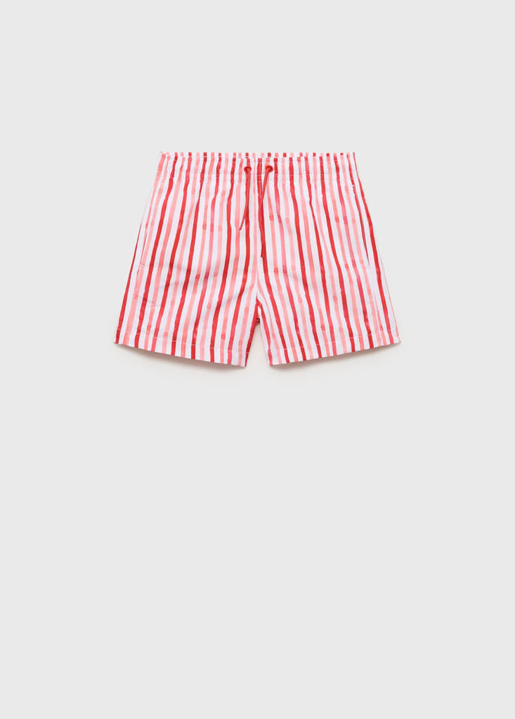 Coupe droite. Design court. Imprimé à rayures. Cordon de serrage à la taille. Poche plaquée. Produit en promotion