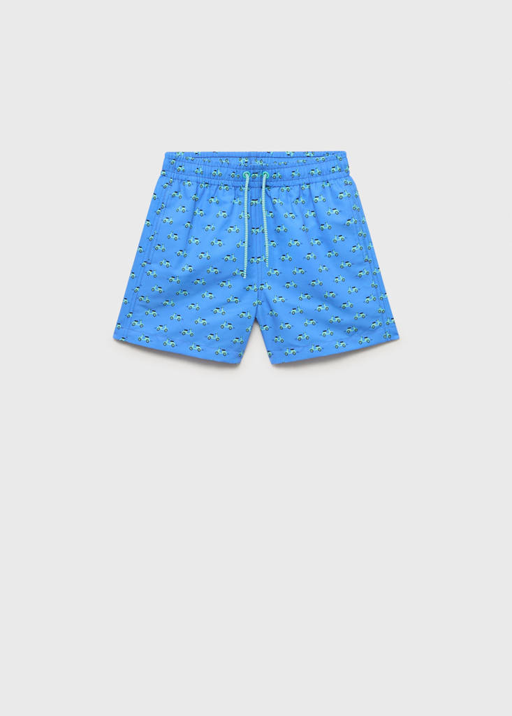 Doublure intérieure. Imprimé motos. Design court. Coupe droite. Taille élastique avec cordon. Poche plaquée