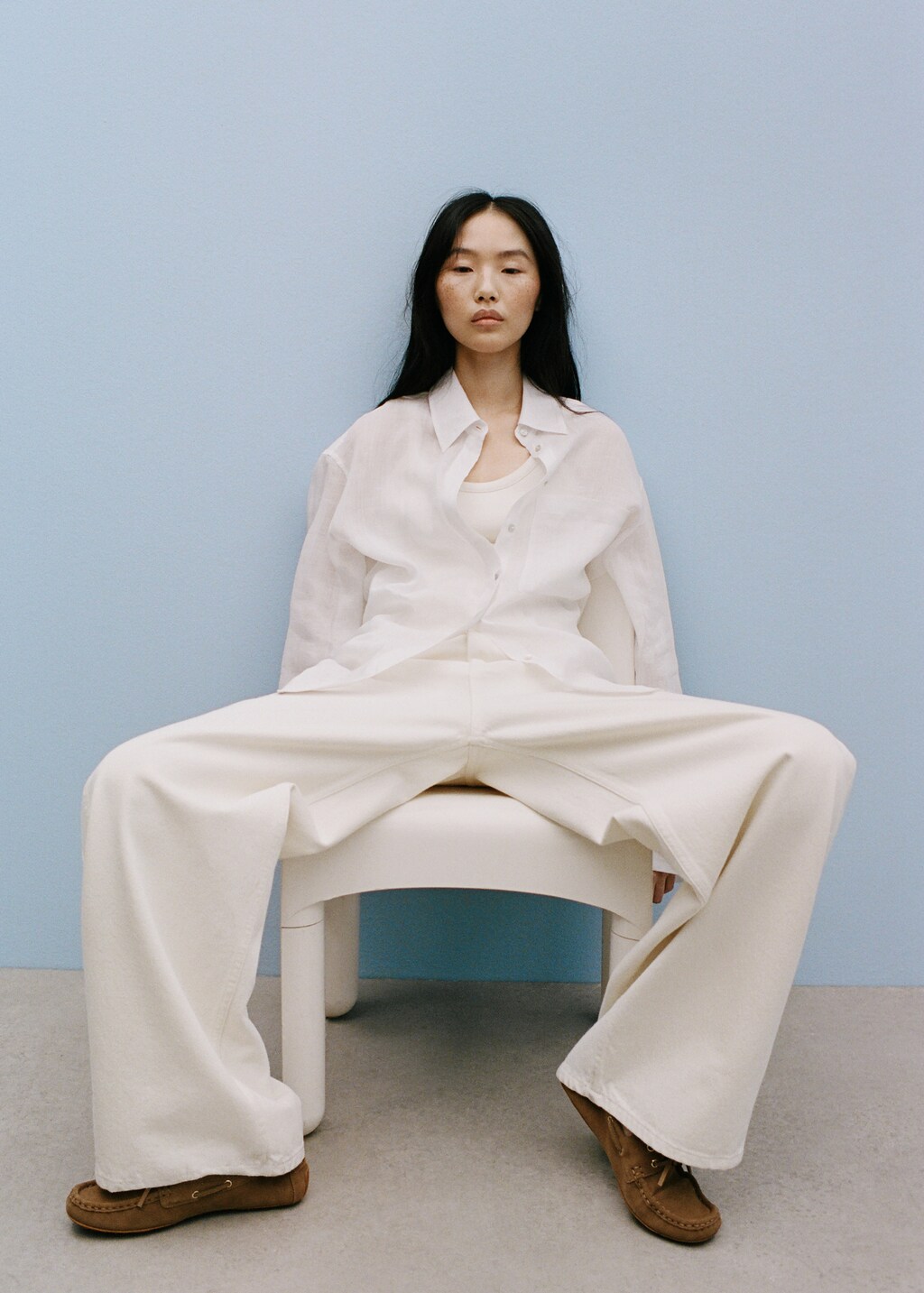 Tissu 100 % ramie. Coupe droite. Coupe regular. Col chemise. Manches longues et poignets boutonnés. Poche plaquée sur la poitrine. Fermeture avant avec boutons.