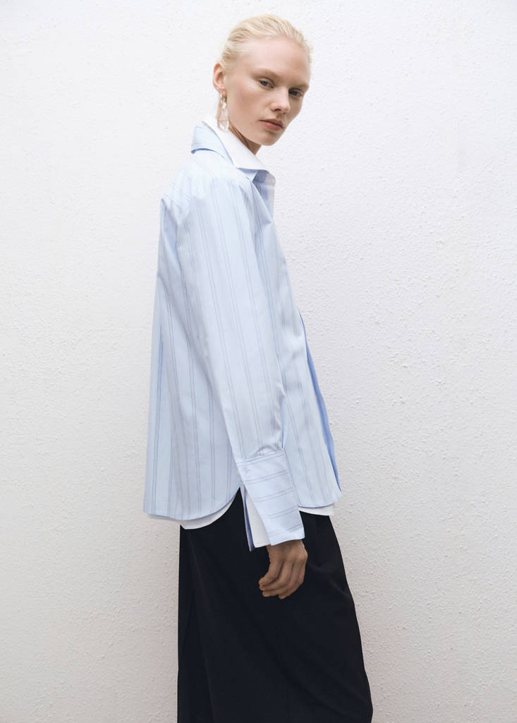 100 % coton. Tissu popeline de coton. Tissu léger. Motif à rayures. Coupe regular. Col chemise. Manches longues et poignets boutonnés. Fermeture avant avec boutons. Collection Selection