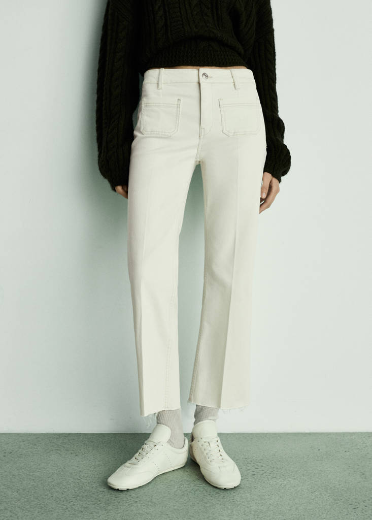 Jean flare crop poches