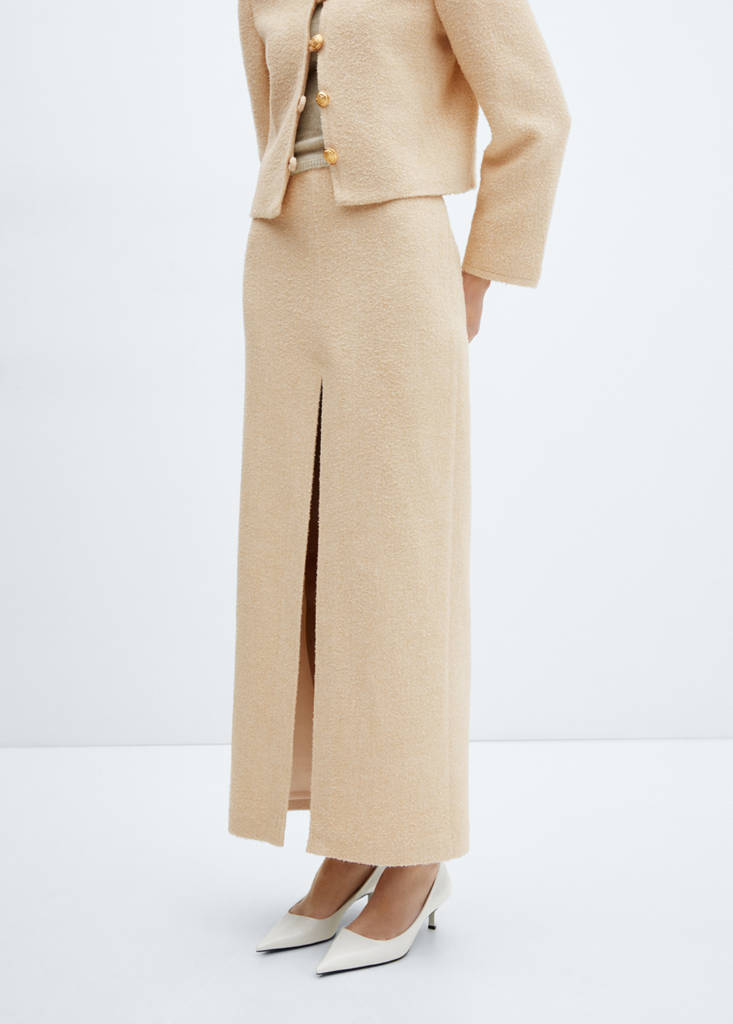 Coupe longue, coupe droite, fermeture Éclair invisible sur le côté, ouverture en bas à l'avant, doublure, total look.