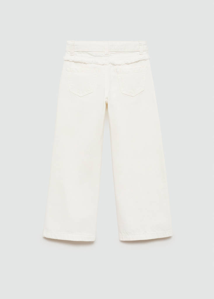 Collection Rentrée des classes. Tissu en coton de style jean. Coupe droite. Design wideleg. Taille mi-haute. Détails effilochés. Cinq poches. Fermeture éclair et bouton