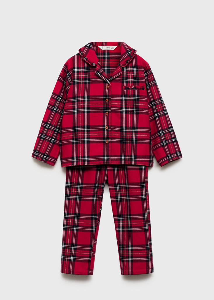 Pack de t-shirt et pantalon de pyjama. Tissu en coton mélangé. Coupe droite. Motif à carreaux. Détails en lurex. Revers. Manche longue. Poche plaquée. Fermeture avant avec boutons. Design long. Taille élastique avec fermeture à nœud. Collection Noël