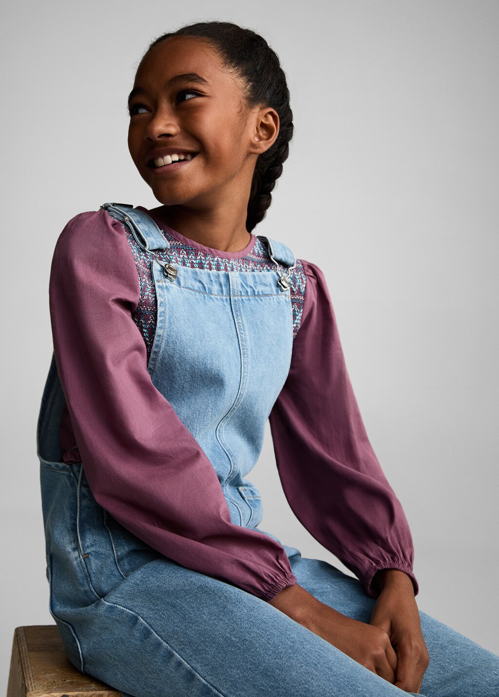 100% Coton. Design long. Design droit. Deux poches plaquées sur le devant. Bretelles. Fermeture à boutons sur les côtés. Encolure carrée.