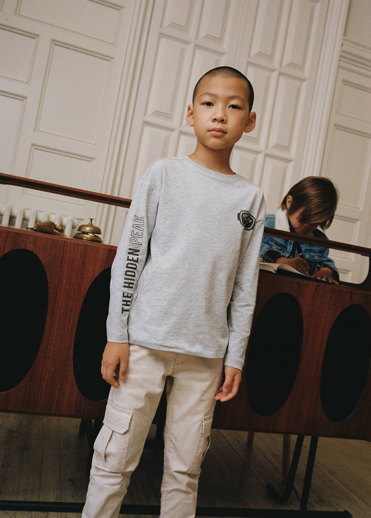100 % coton. Coupe droite. Col rond. Manche longue. Motif imprimé