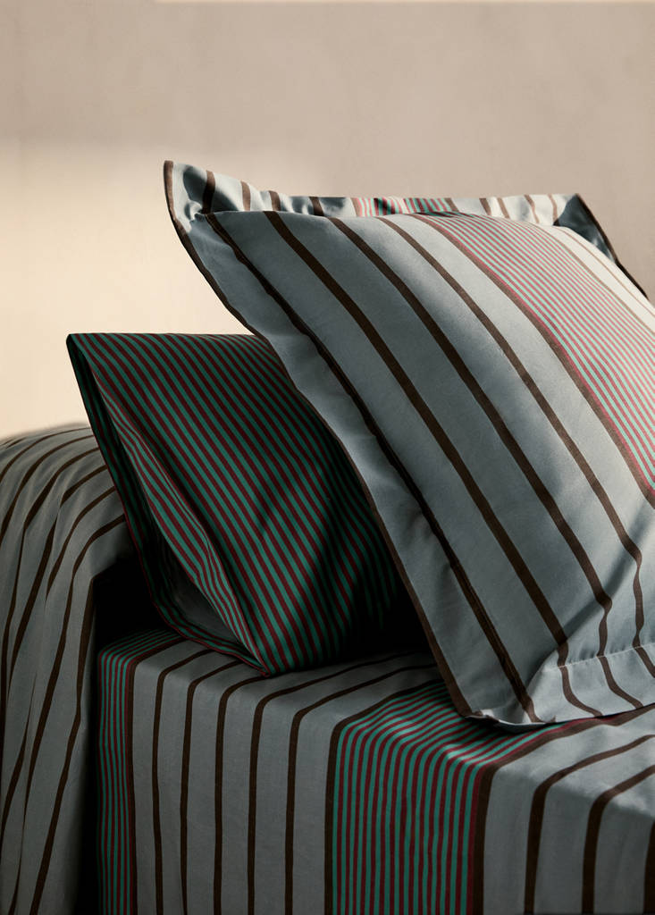 Deux taies d'oreiller en percale de coton rayures multiples 60x60 cm