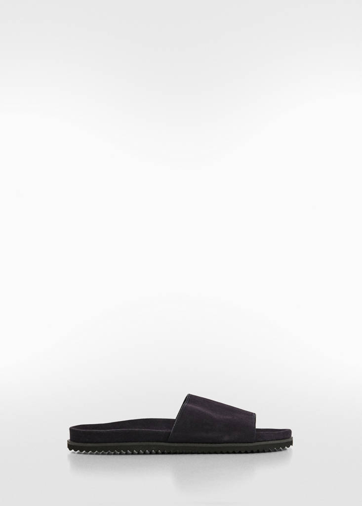100 % suède. Large bande de maintien. Semelle épaisse en caoutchouc contrastée