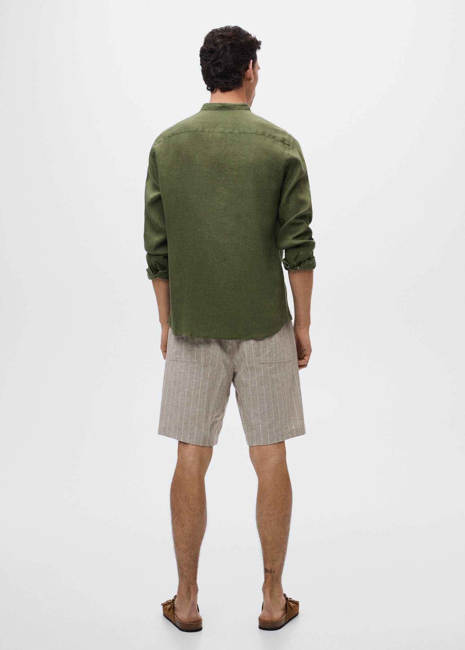 Slim-fit. 100 % lin. Tissu léger. Col mao. Manches longues. Manches longues avec poignets boutonnés. Poche plaquée sur la poitrine. Fermeture boutonnée. Le mannequin mesure 187 cm et porte une taille M.