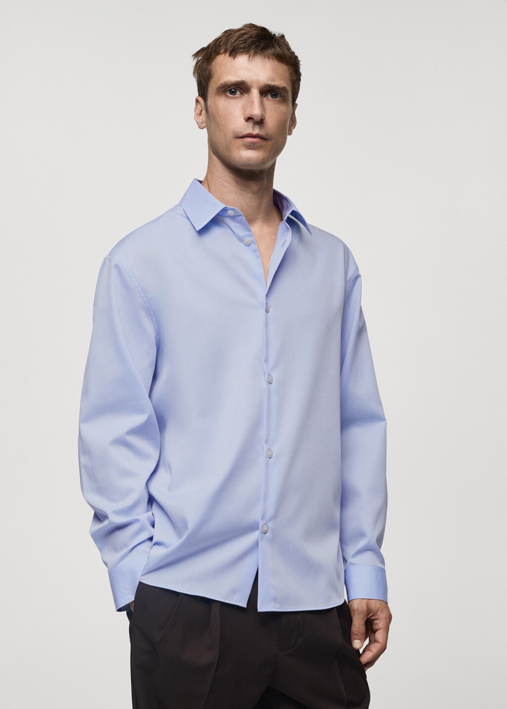 Boxy-fit. 100% Coton. Col classique. Fermeture à boutons. Poignets boutonnés. Ourlet arrondi.