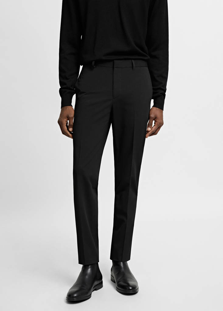 Collection tailleur. Comfort Stretch : Tissu élastique pour plus de confort. Confectionné en polyester recyclé, une fibre résistante, respirante et facile d'entretien qui permet un grand confort d’utilisation. Super slim-fit. Pinces sur le devant et à l'arrière. Fermeture Éclair avec agrafe et bouton dissimulés. Passants de ceinture. Deux poches latérales. Poche gousset au niveau des hanches. Deux poches passepoilées avec bouton à l'arrière. Confort : Ce vêtement offre une liberté de mouvement totale et retrouve sa forme initiale. Poche ticket. Deux poches passepoilées à l'arrière