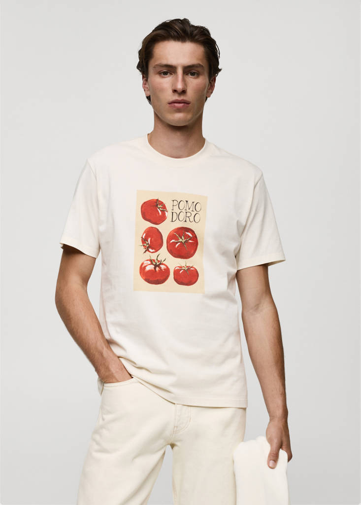 Coupe regular. Dessin imprimé à l’avant. Col rond. Manche courte. Ourlet droit. Tissu 100% coton